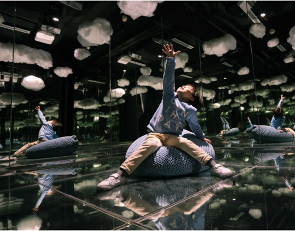 《七彩光球》,色彩繽紛的星云填充了這個云霧繚繞的仙境,在《天氣實(shí)驗(yàn)室》中,用聲音監(jiān)測未來云朵的顏色變化,體驗(yàn)者可以親自控制“天氣”的變化。只需對著天空呼喊,星云就會持續(xù)變幻顏色,當(dāng)聲音達(dá)到一定分貝值時,會出現(xiàn)雷電交加的酷炫畫面,感受呼風(fēng)喚雨,風(fēng)起云涌的浪漫科技。